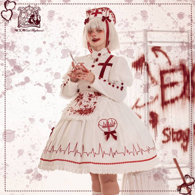 【尾款+现货猩红十字】喵艾卿原创万圣节Lolita护士哥特洛丽裙op