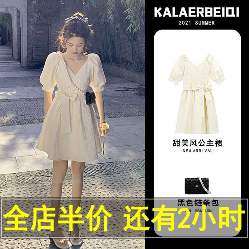 2021年新款春款法式初恋白色超仙女森系气质茶歇连衣裙子女装夏装