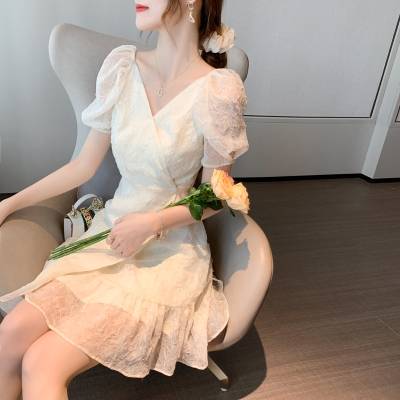 2021夏季新款法式泡泡袖雪纺连衣裙初恋小个子气质荷叶边仙女短裙