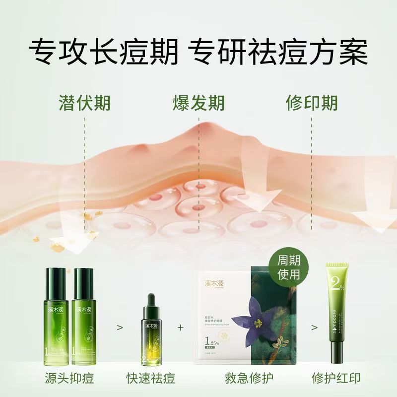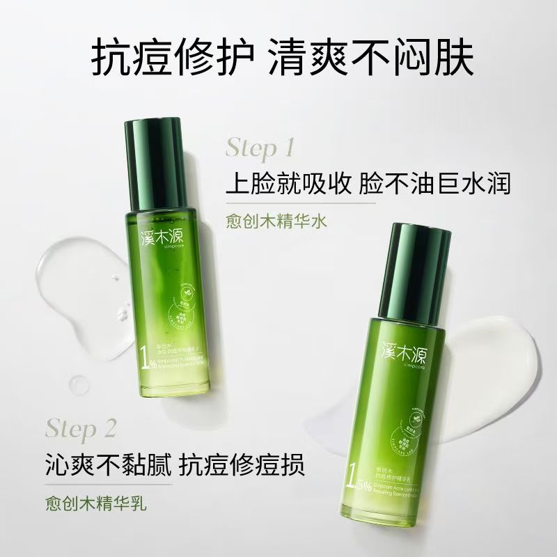 溪木源水乳控油祛痘补水抗痘熬夜修护油痘敏肌专用愈创木水乳套装,祛
