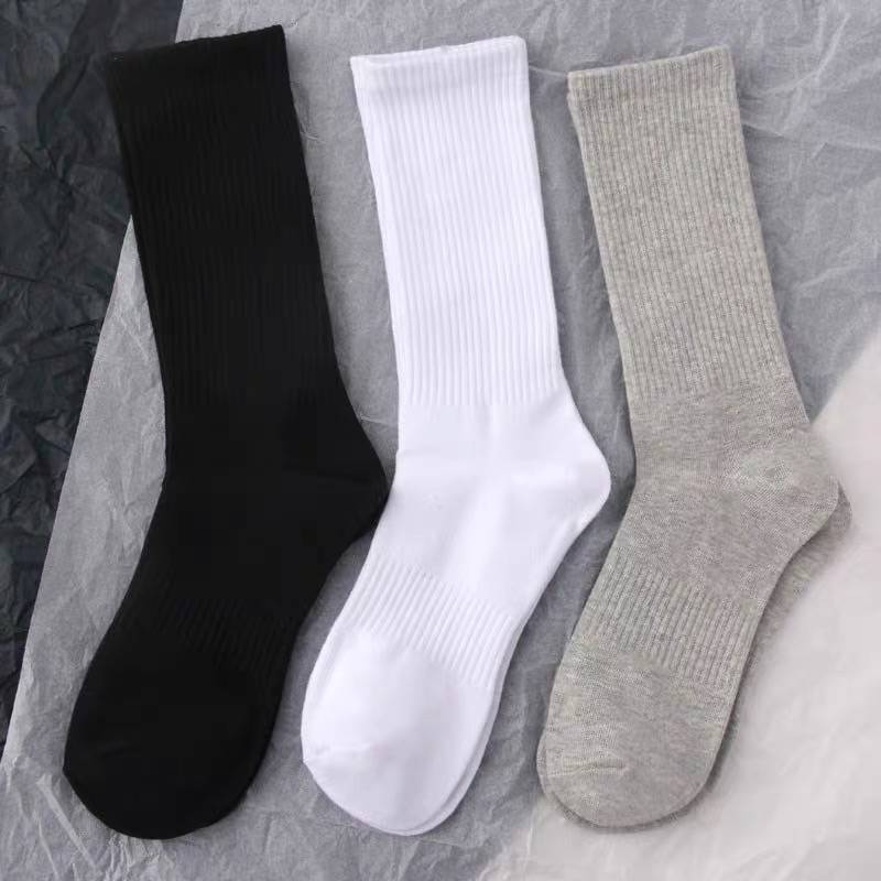 经典黑白灰纯色日系简约男女长筒袜子春秋款街头百搭学院风中筒袜