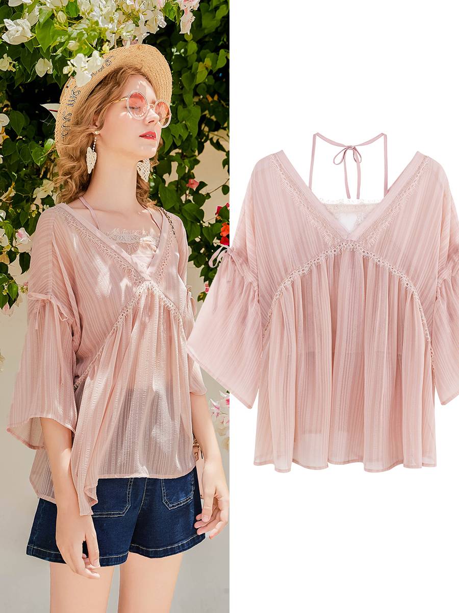 NN雪纺衫短袖新款2018夏装韩版宽松显瘦气质上衣甜美洋气小衫