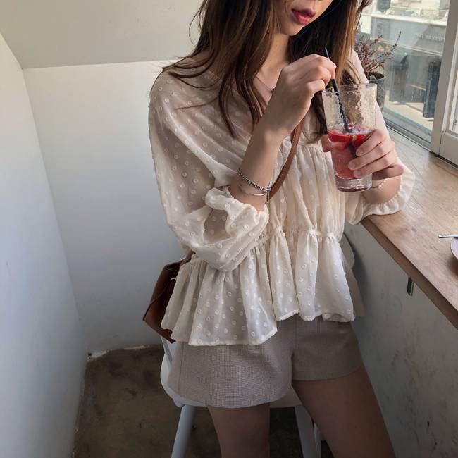 nnnn纺衫女夏2018新款chic宽松显瘦防晒衣半袖v领波点上衣