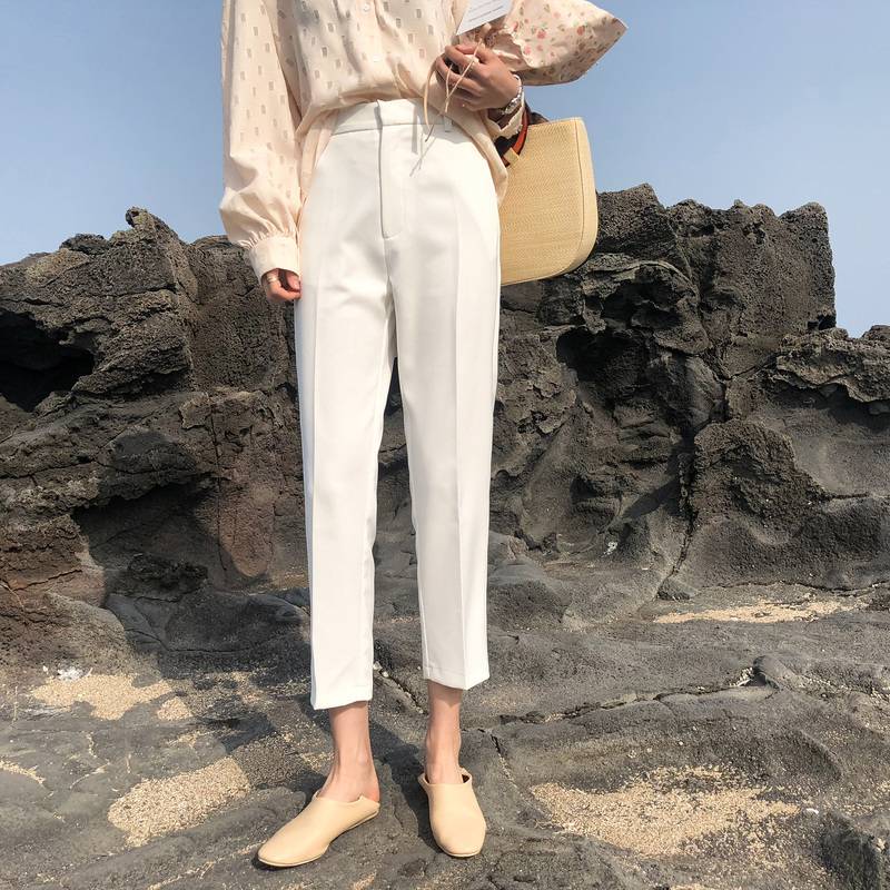白色雪纺九分直筒裤女高腰2018夏季新款韩版宽松休闲西装裤