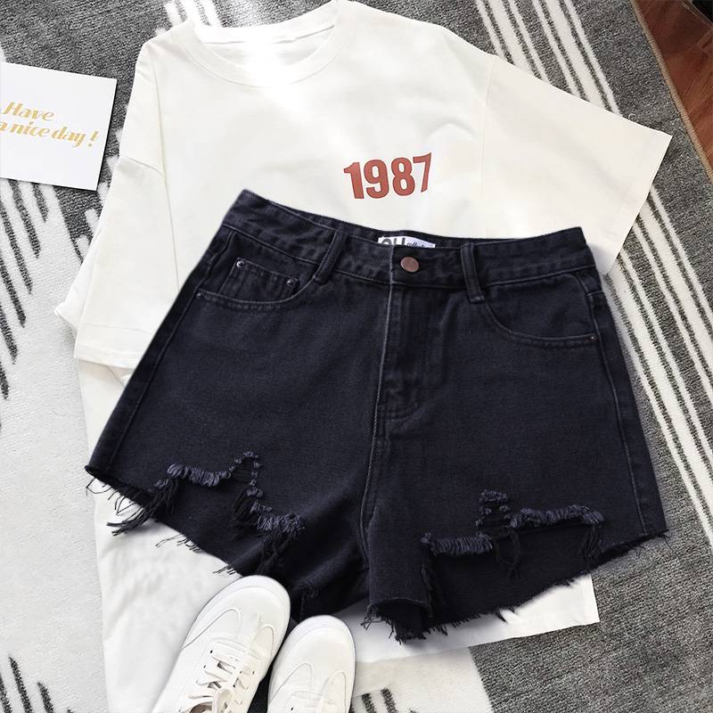 黑色牛仔短裤女夏2018新款chic宽松阔腿韩版百搭高腰显瘦破洞热裤