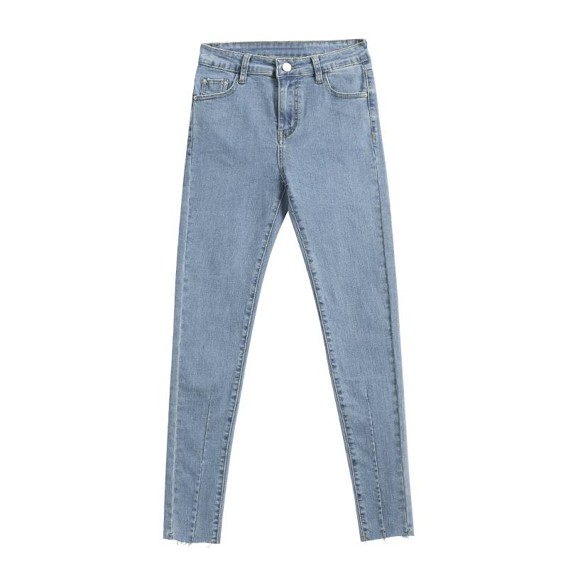 牛仔裤女装春秋2018新款韩版学生高腰显瘦百搭毛边九分小脚铅笔裤