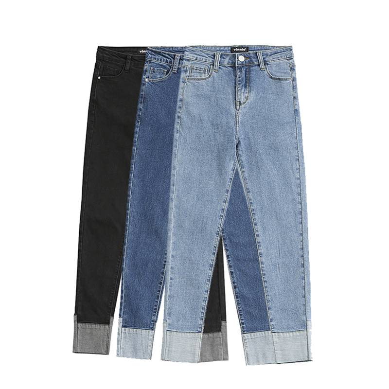 紧身牛仔裤女春秋2018新款韩版显瘦高腰撞色拼接九分小脚铅笔裤子