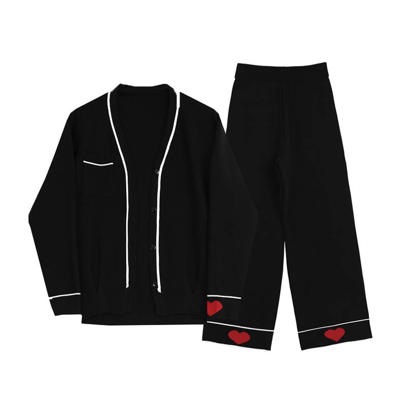 秋装女2018新款针织套装时尚撞色爱心阔脚裤两件套