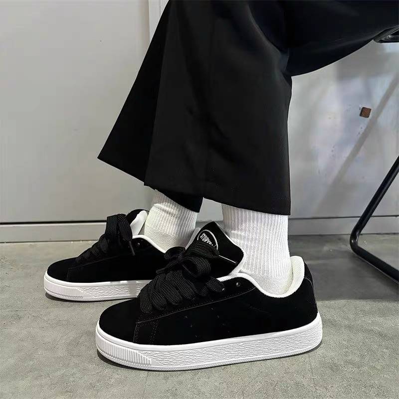 2025春季翻毛皮黑色面包鞋男款复古小众