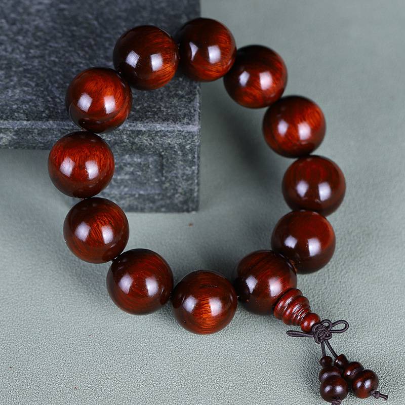 小叶紫檀犀牛角收藏老料鸡血红高密沉水佛珠男女原木佛珠手串