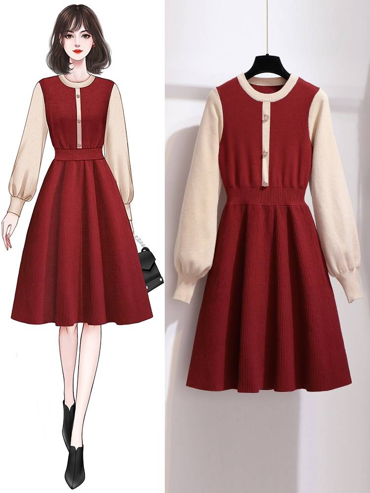 针织连衣裙女秋冬季2020新款小个子内搭毛衣裙红色打底配大衣裙子