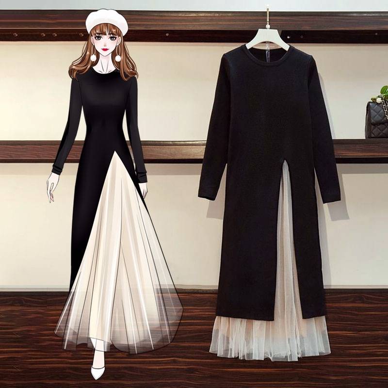毛衣长裙子两件套显瘦长款仙女网纱裙套装超仙针织内搭连衣裙秋冬
