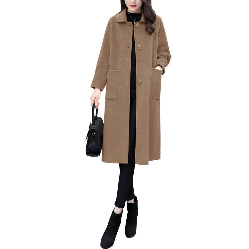 反季清仓大衣女中长款2020韩版秋冬灯笼袖毛呢外套女宽松呢子大衣