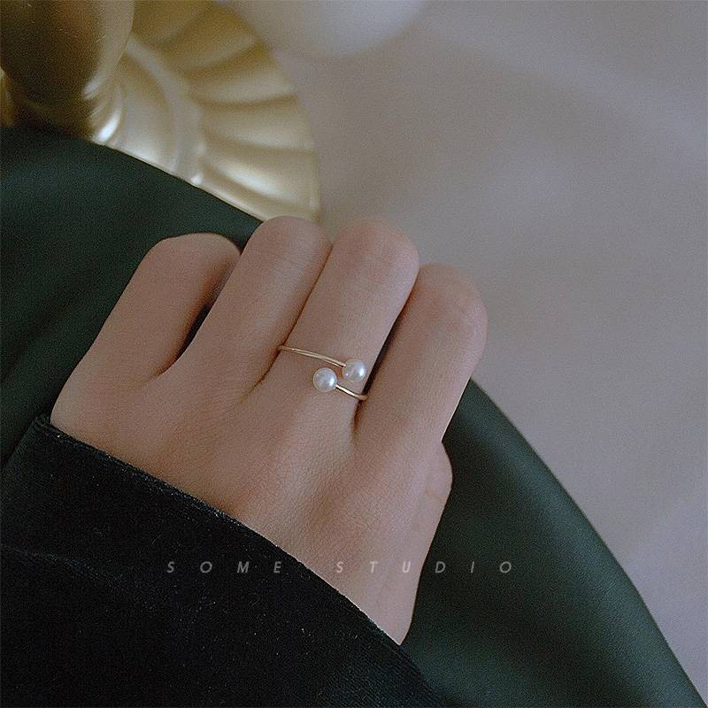[丢了颗珍珠]戒指女天然淡水珍珠个性食指简约百搭开口可调节14K包金不掉色