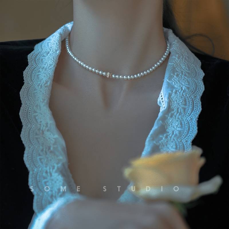 [丢了颗珍珠] 珍珠锁骨链项链女潮网红复古法式小众金属拼接choker纯手工可定制