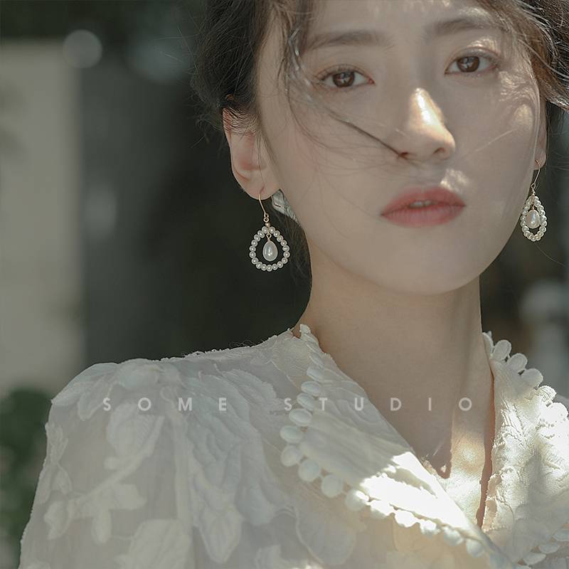 [丢了颗珍珠]珍珠耳环女气质长款复古高级感港风法式网红水滴设计感无耳洞耳夹