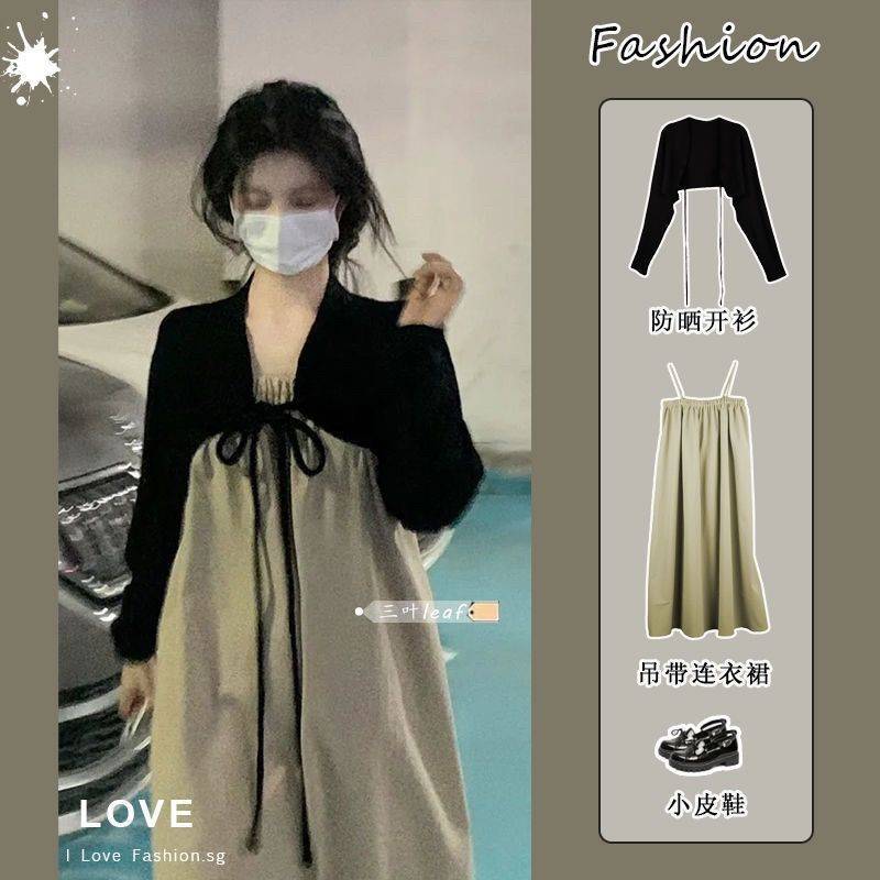 套装女2022夏季新款小个子抹胸吊带裙温柔风连衣裙防晒开衫两件套