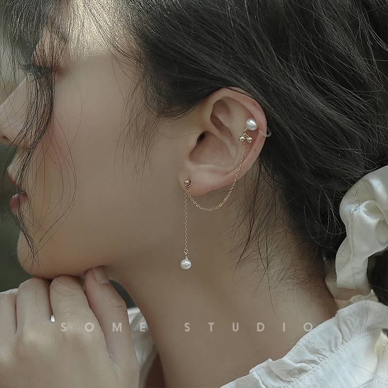 [丢了颗珍珠] 耳环森系个性高级双耳洞耳骨夹一体式时尚设计感耳钉