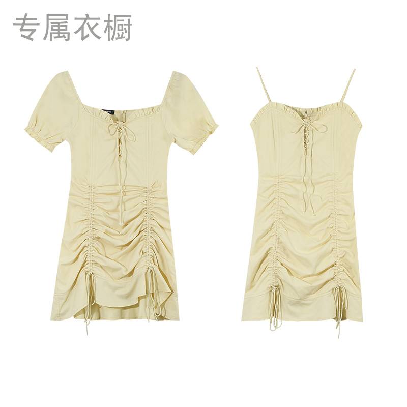 纯欲法式连衣裙女泡泡袖夏小个子设计感抽绳复古修身显瘦包臀裙子