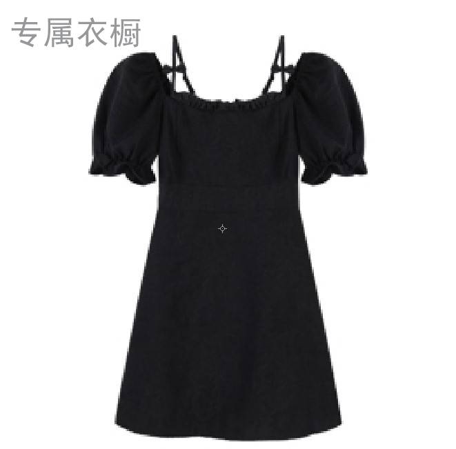 甜辣妹泡泡袖黑色连衣裙女装夏季2021新款小黑裙小个子修身短裙子