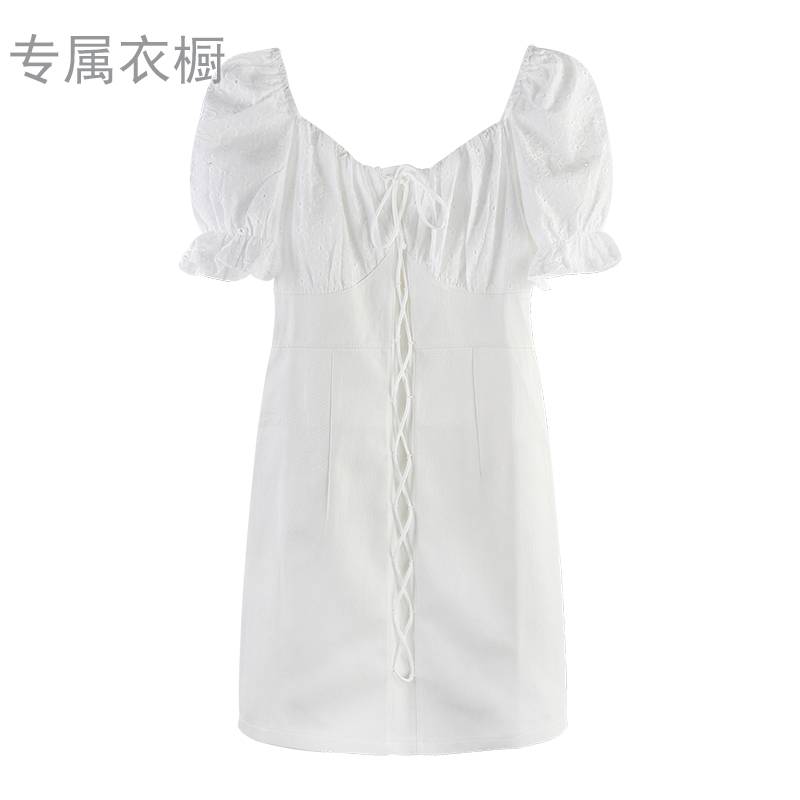 泡泡袖白色连衣裙女夏季2021新款法式初恋设计感小个子气质短裙子