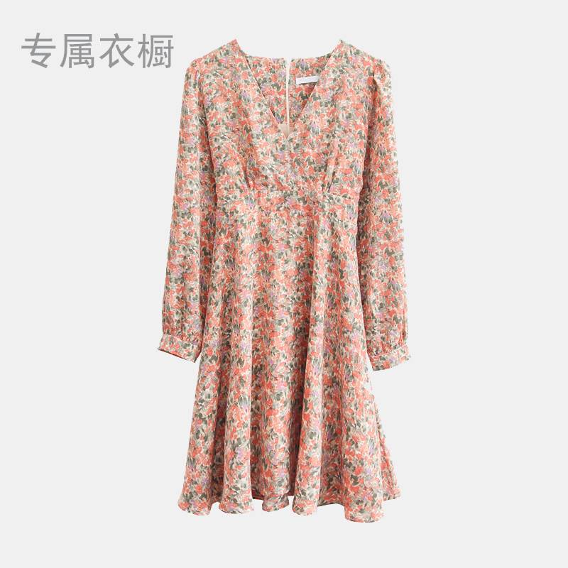 少女凯拉女装法式浪漫长袖2021夏季新款碎花V领连衣裙度假裙子女