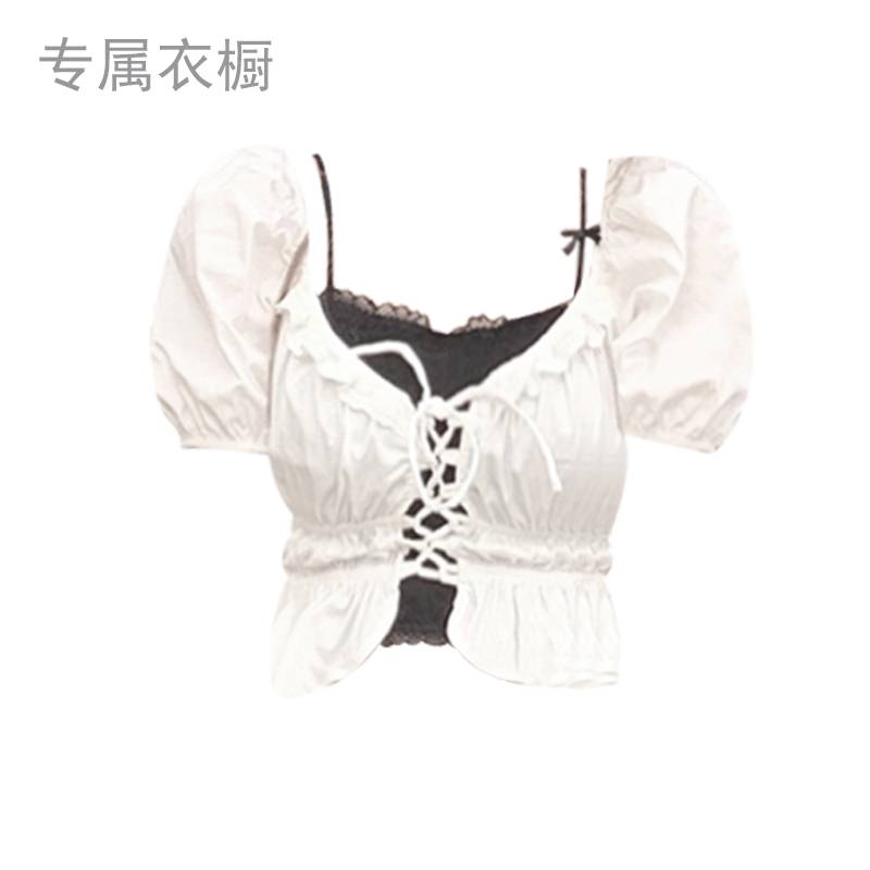 甜酷辣妹风露肩绑带短款上衣修身别致设计感小众衬衫背心两件套装