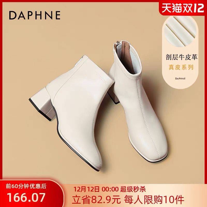 达芙妮真皮马丁靴女秋米白色短靴女2021年新款瘦瘦靴加绒女鞋秋冬