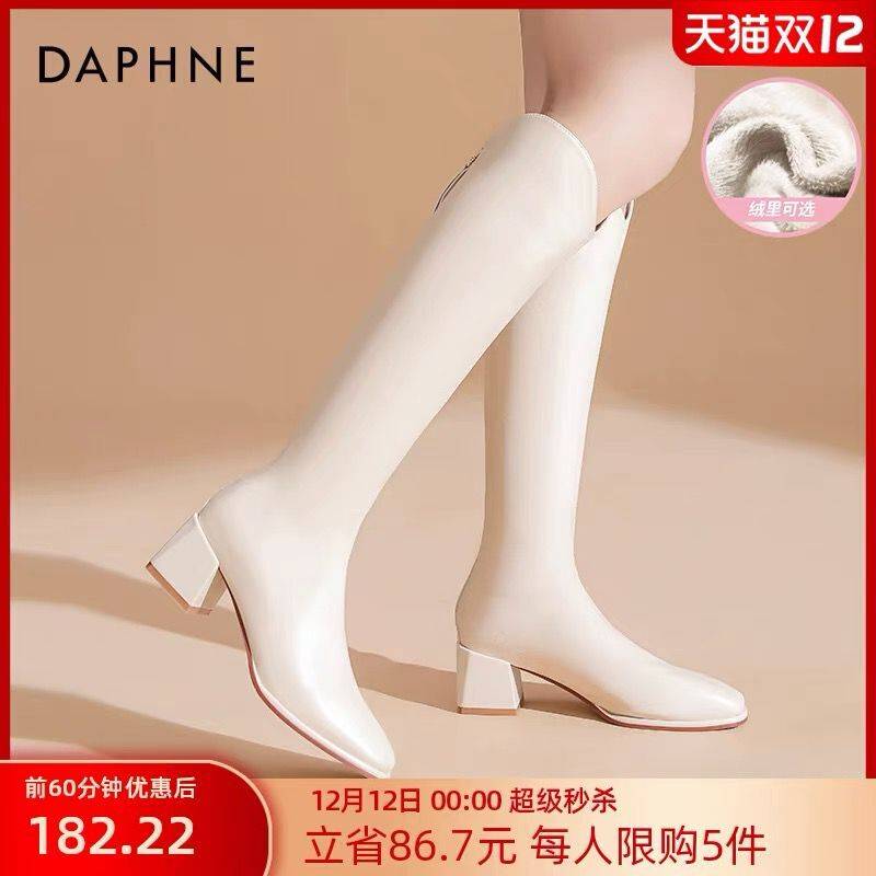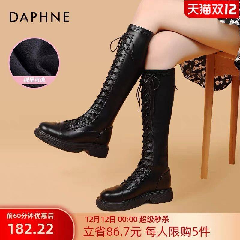 达芙妮靴子女冬长筒靴女骑士靴2021年新款女显瘦厚底鞋子女冬加绒