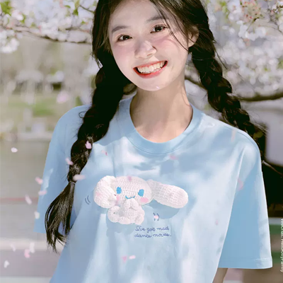 三丽鸥蓝色玉桂狗上衣可爱新款大耳狗短袖T恤女夏季