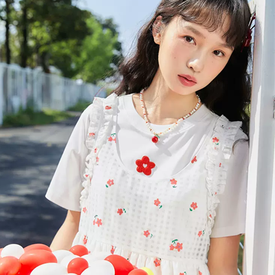 小红花公主裙2022春夏新款两件套元气少女T恤乖巧连衣裙