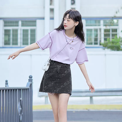 半身裙2022春夏新款牛仔短裙女设计感短裙半身裙黑色简约