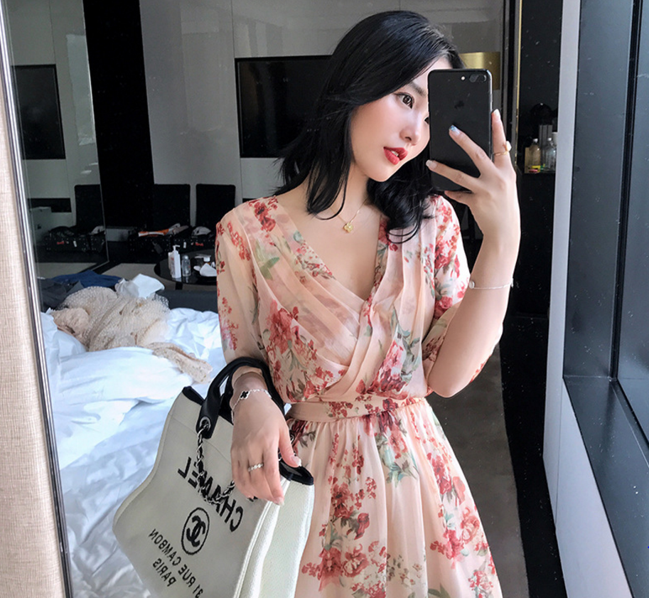 安斐欧娜韩版甜美气质女装款V领大摆型连衣裙 206.00 已售:0件