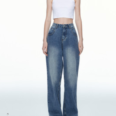 太平鸟复古直筒牛仔裤女2022早秋新款宽松阔腿高腰直筒牛仔长裤