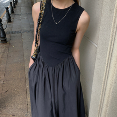 太平鸟粉色赫本风连衣裙白桃气泡水2022夏季新款收腰温柔气质长裙