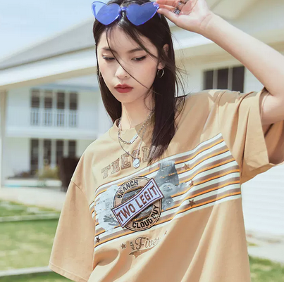 太平鸟魔发精灵联名美式印花T恤女夏2022新款设计感宽松短袖上衣