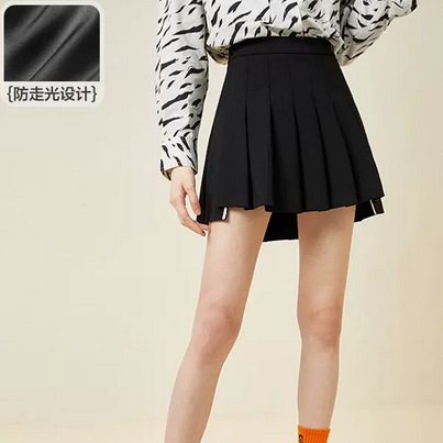 太平鸟百褶裙女黑色2022夏高腰半身裙显瘦学院风小黑裙a字短裙