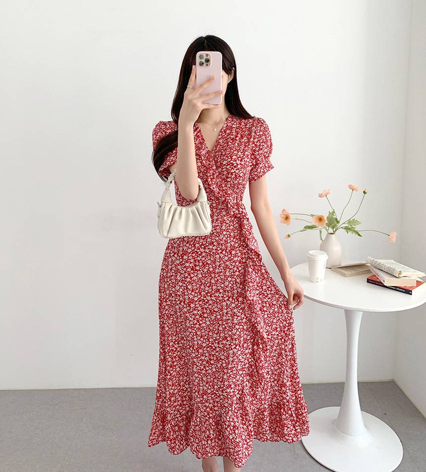 法式复古时尚连衣裙2020夏季新款女装气质百搭收腰显瘦印花裙子女