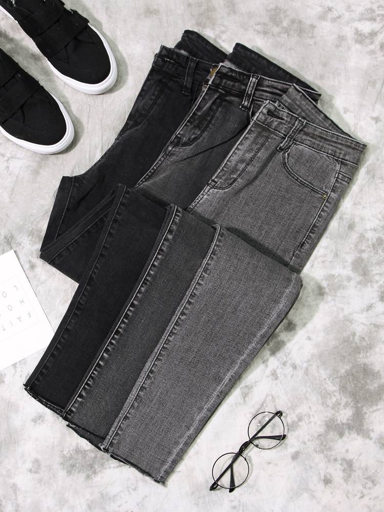 烟灰色九分牛仔裤女高腰弹力紧身小脚裤韩版显瘦百搭铅笔裤秋冬潮