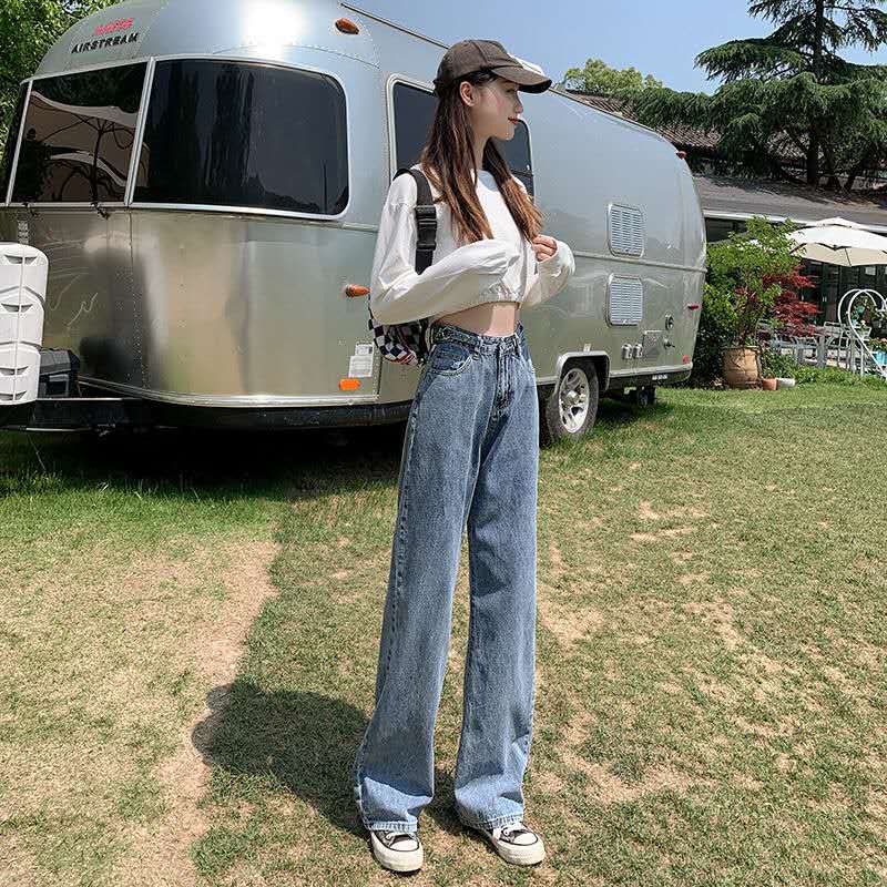 牛仔裤女高腰宽松秋冬新款直筒小个子显瘦垂感拖地阔腿裤泫雅长裤