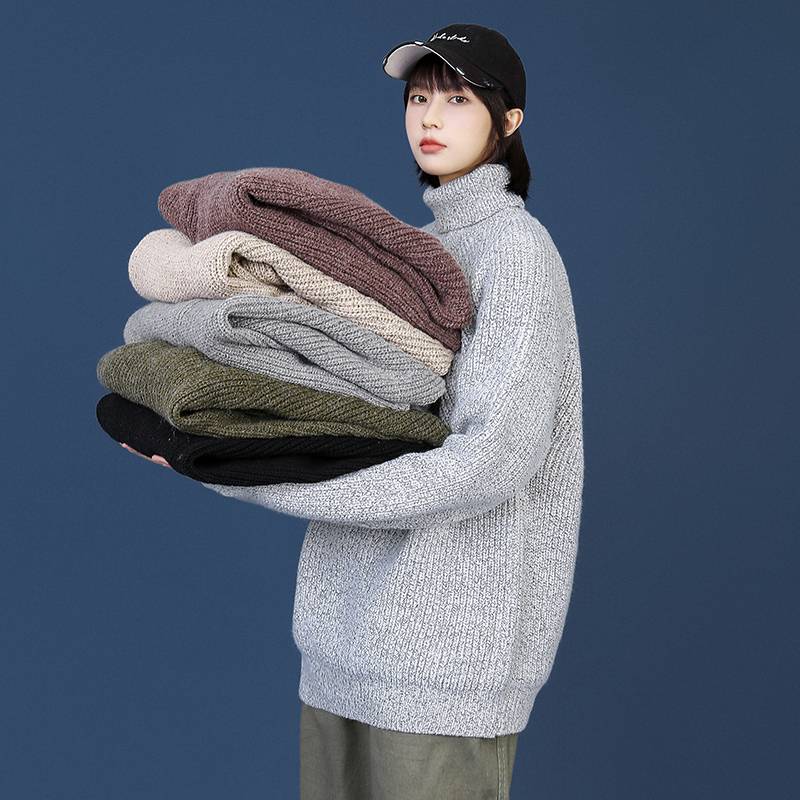 中性风高领毛衣女宽松百搭BF衣服纯色针织衫加厚外套学生港风