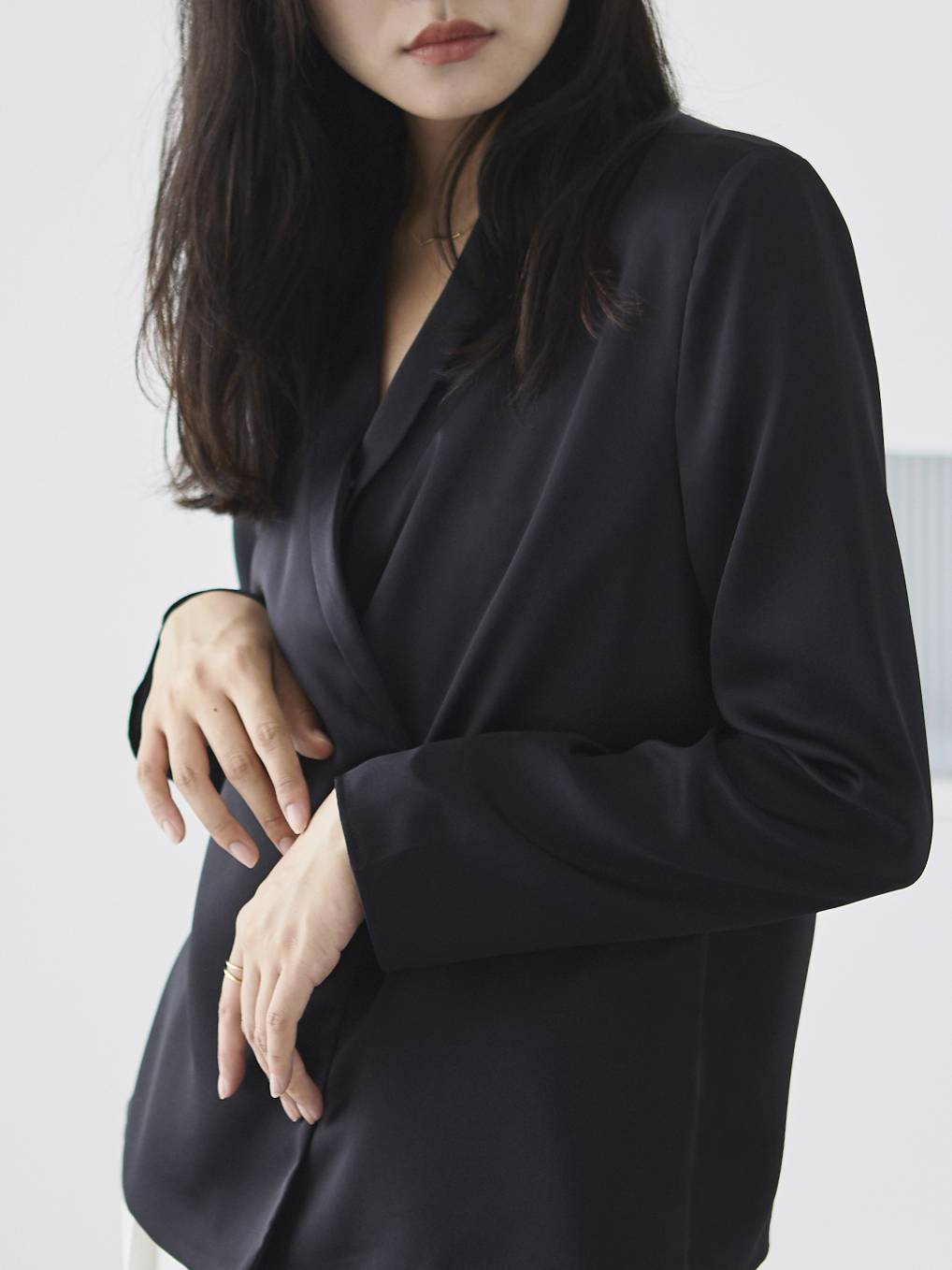 时髦精品复古黑V领上衣女双层设计感小众长袖简约气质百搭衬衫Z秋