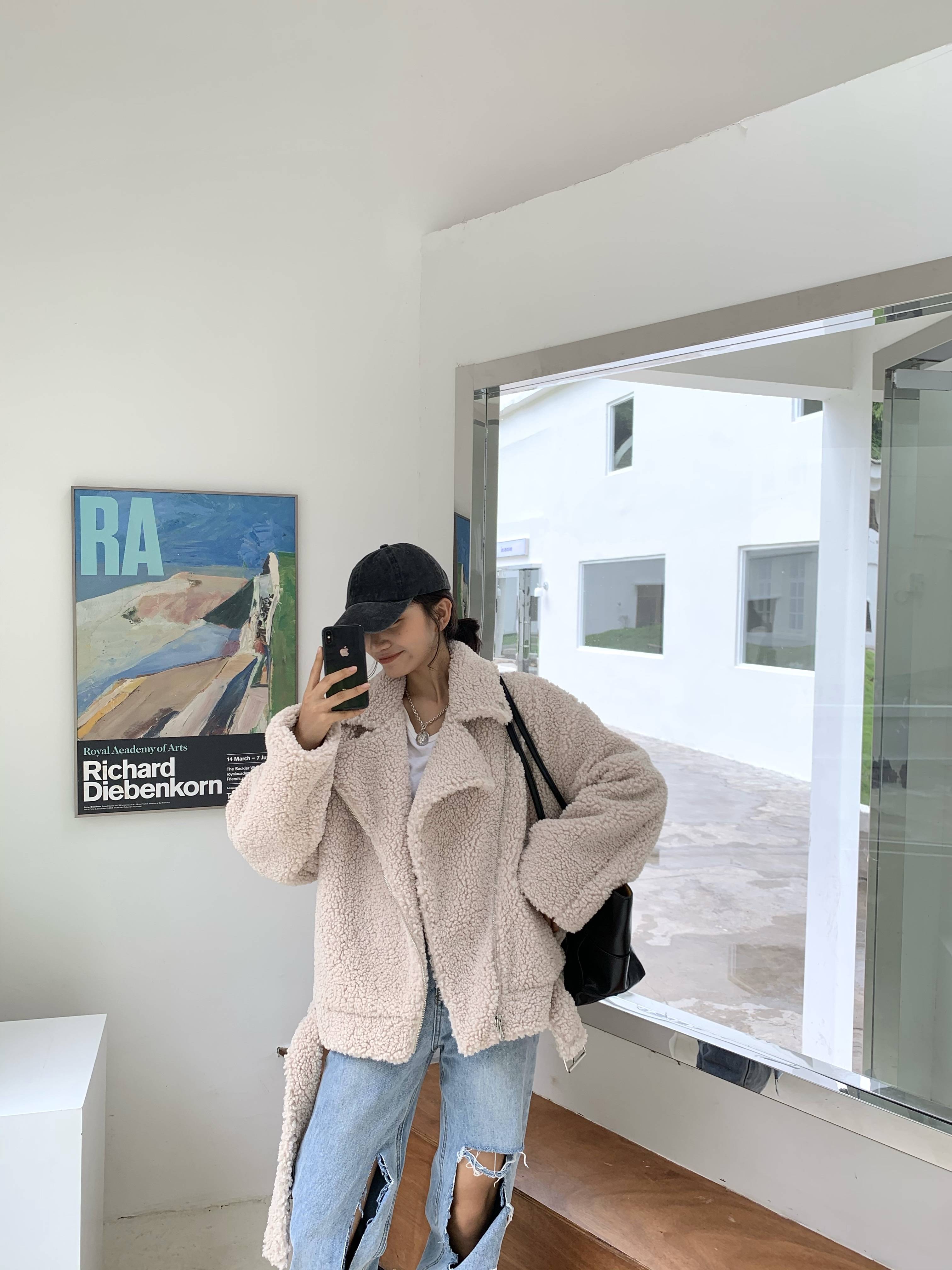 摩登Mdeng197羊羔毛机车翻领外套女冬新款时尚保暖皮毛一体6315