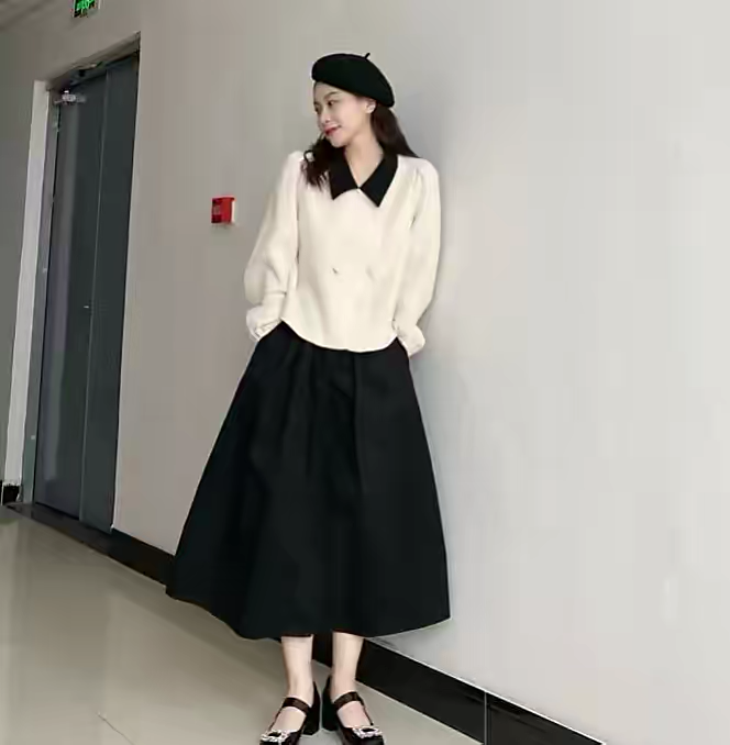 法式复古长袖连衣裙新款早秋韩国黑裙宽松女装