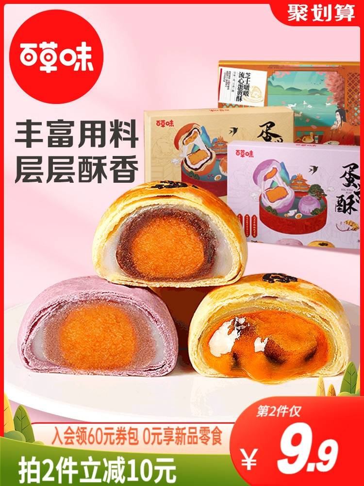 拍2立减10 百草味蛋黄酥300g雪媚娘流心麻薯早餐面包整箱休闲零食