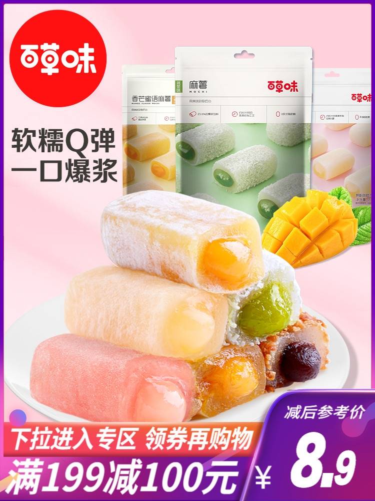 满199减100 百草味夹心麻薯210gx3袋糯米糍传统糕点网红零食小吃