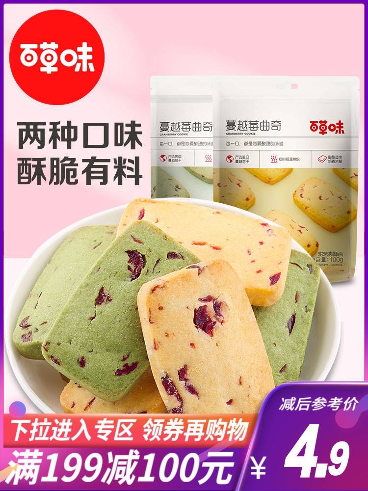 满199减100 蔓越莓曲奇100g网红美食手工饼干点心办公室零食