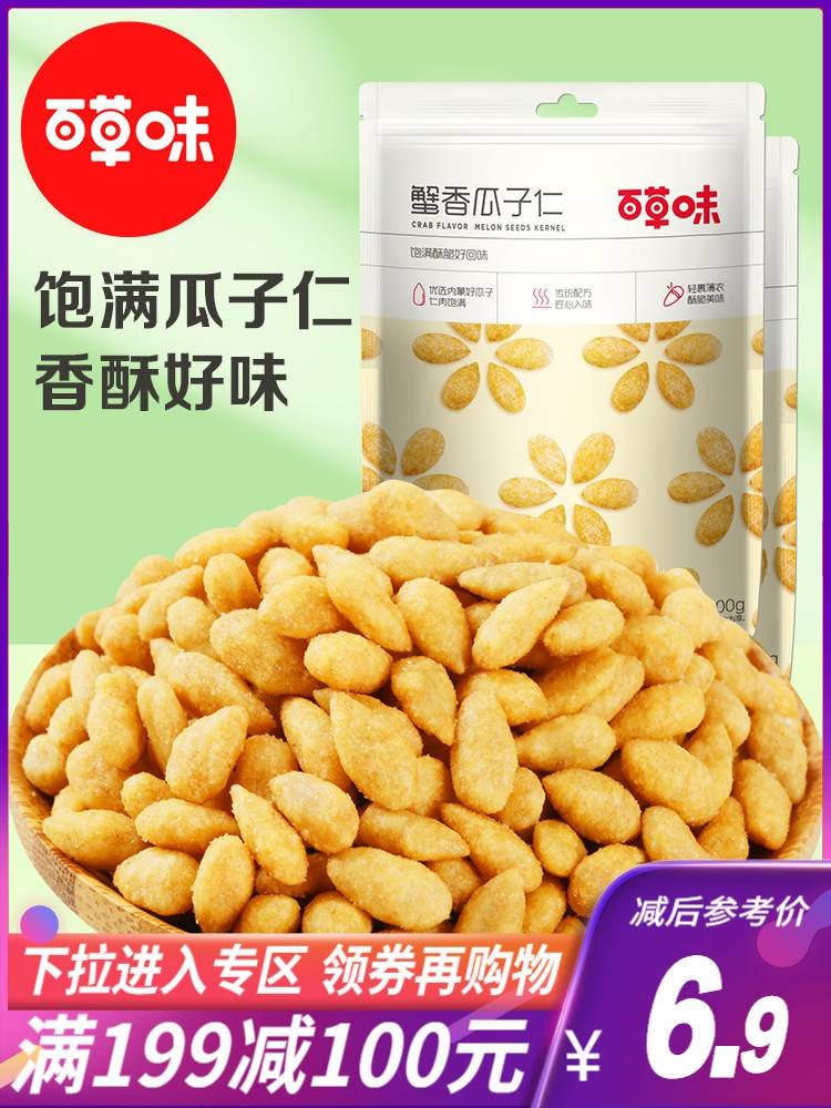 满199减100 蟹香瓜子仁100gx2袋 炒货特产干果葵花籽仁零食