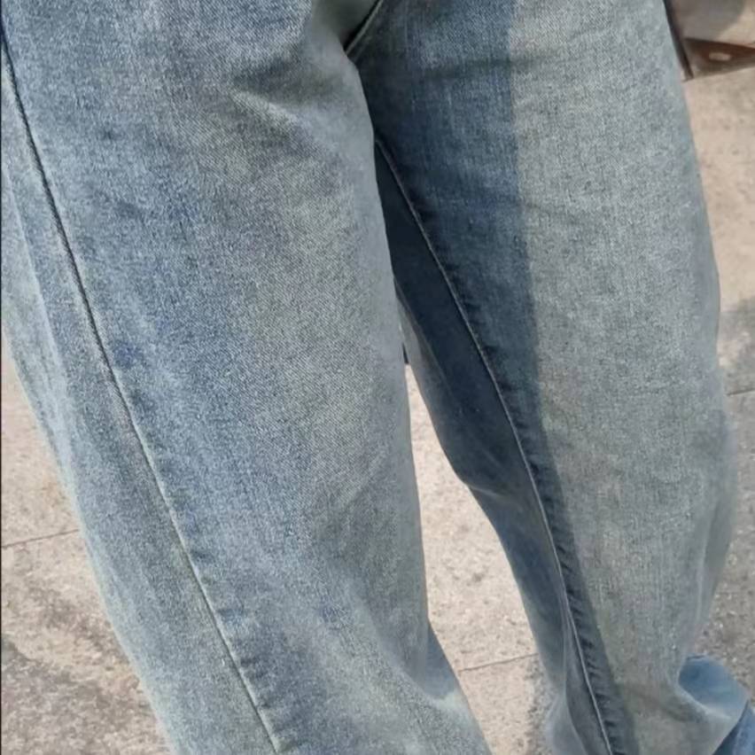 潮流时尚vibe高街复古做旧直筒牛仔裤