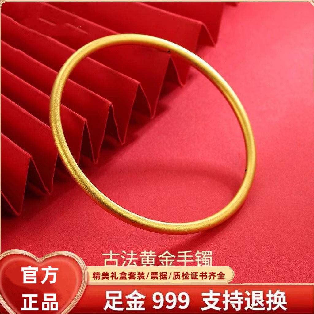 正品黄金手镯女999足金光面素圈古法手镯气质真金手镯送老婆礼物